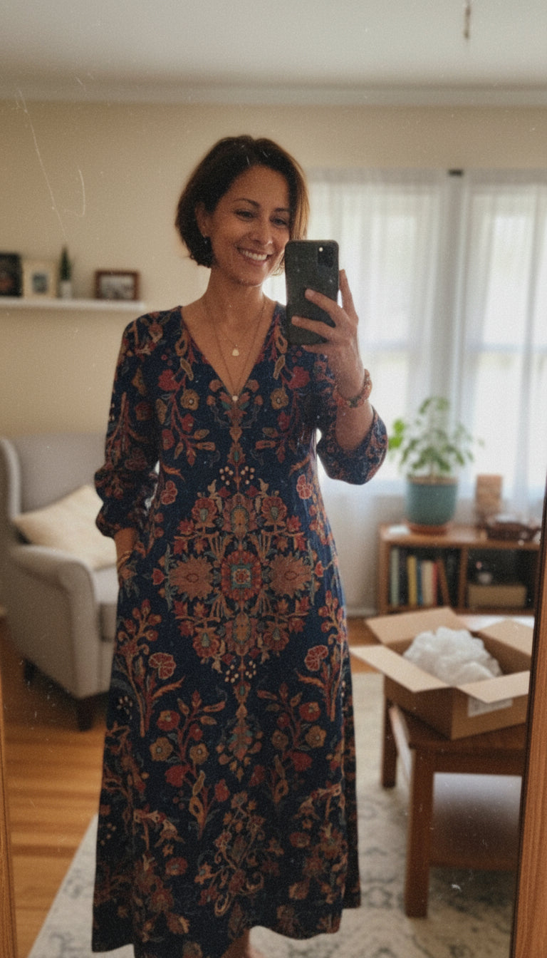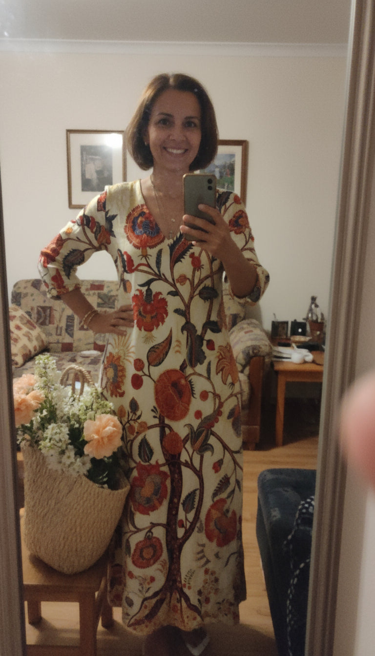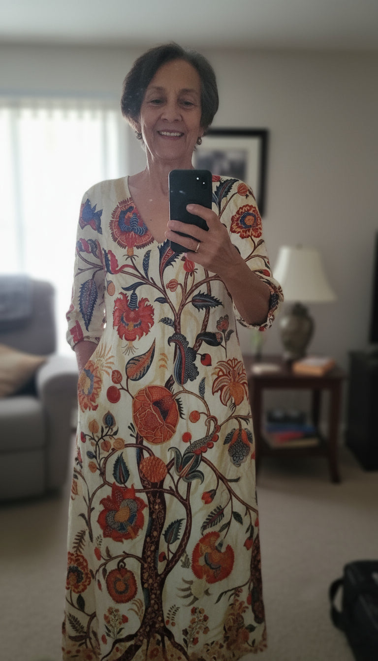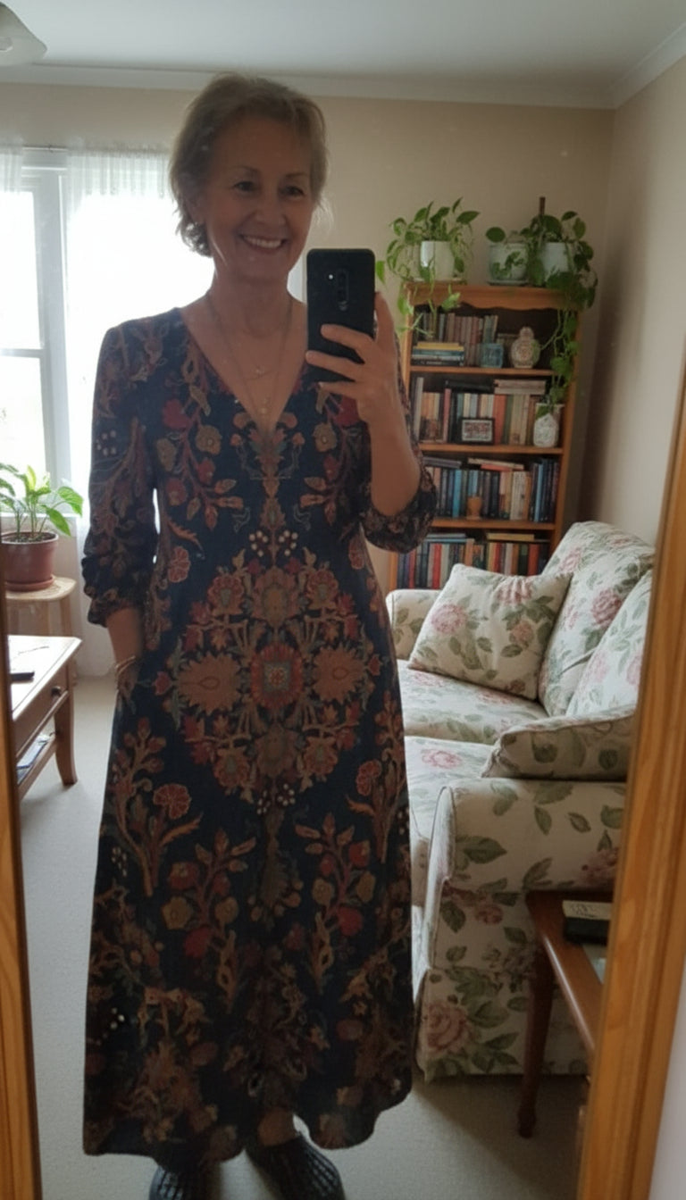 This dress has quickly become my go-to. It pairs beautifully with my jackets and scarves, and always looks refined. It keeps its shape after washing and feels just as comfortable at home as it does when I'm out visiting friends. Truly a graceful everyday piece.